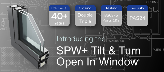 The SPW+ Tilt/Turn window gives a contemporary look and operates in 2 ways. It can be tilted open inwards from the top of the sash for ventilation, or the turn function can be used to open the window inwards from the side. The same handle is used to tilt, turn, open and lock the window. The inward opening design gives safe access to the window for cleaning, whist the tilt feature allows ventilation with restricted access to prevent children from climbing out. This makes Tilt/turn windows particularly useful for high-rise apartments.